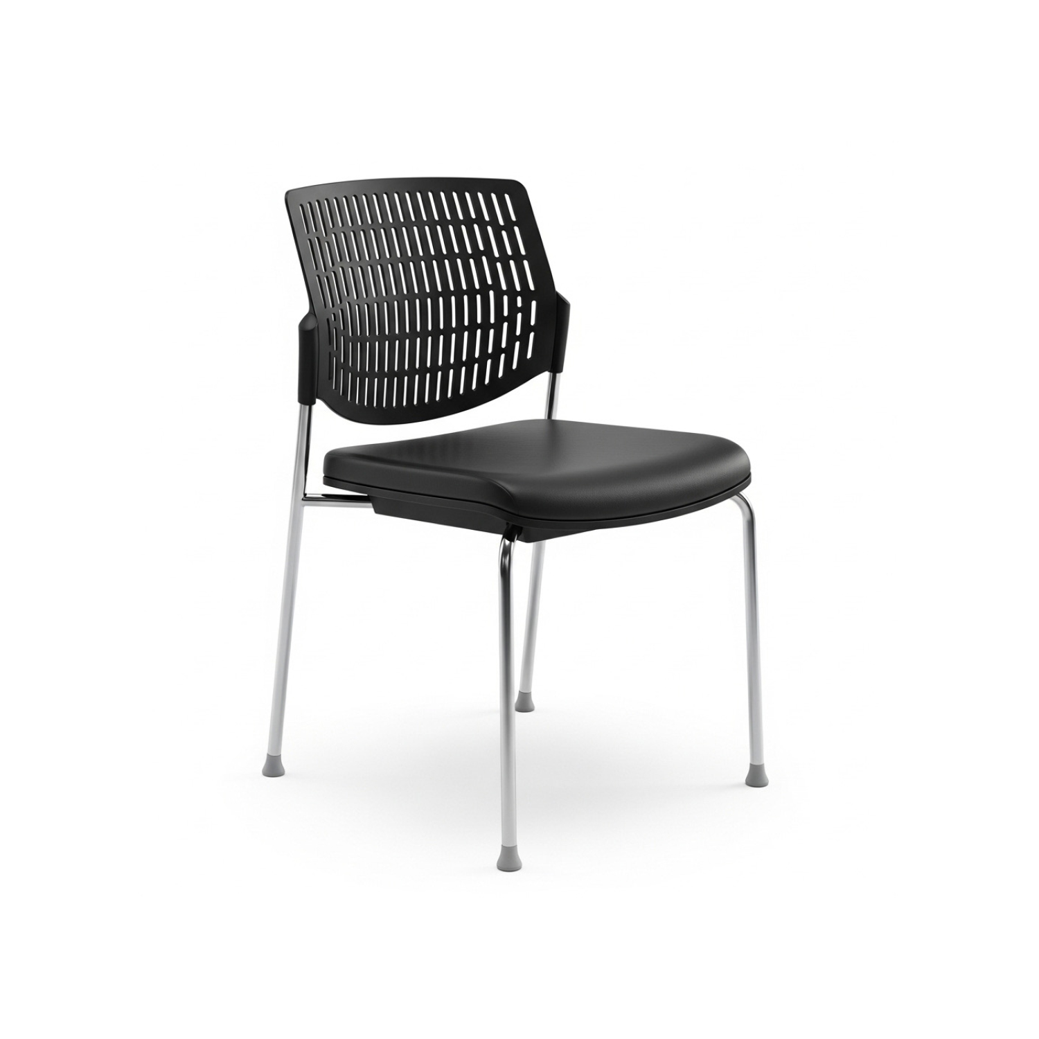 This brown cafeteria chair features a comfortable cushioned seat with a durable metal frame. Designed for extended seating comfort, it is suitable for cafeterias, training rooms, and dining halls needing a balance of comfort and strength.