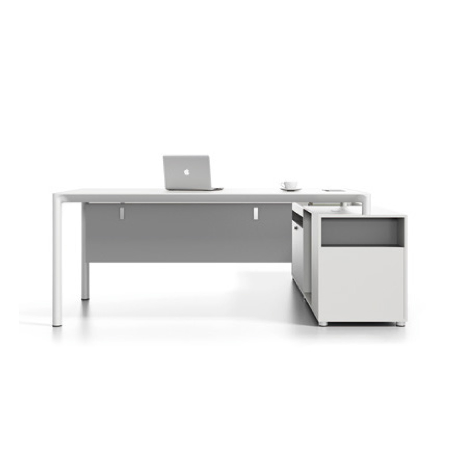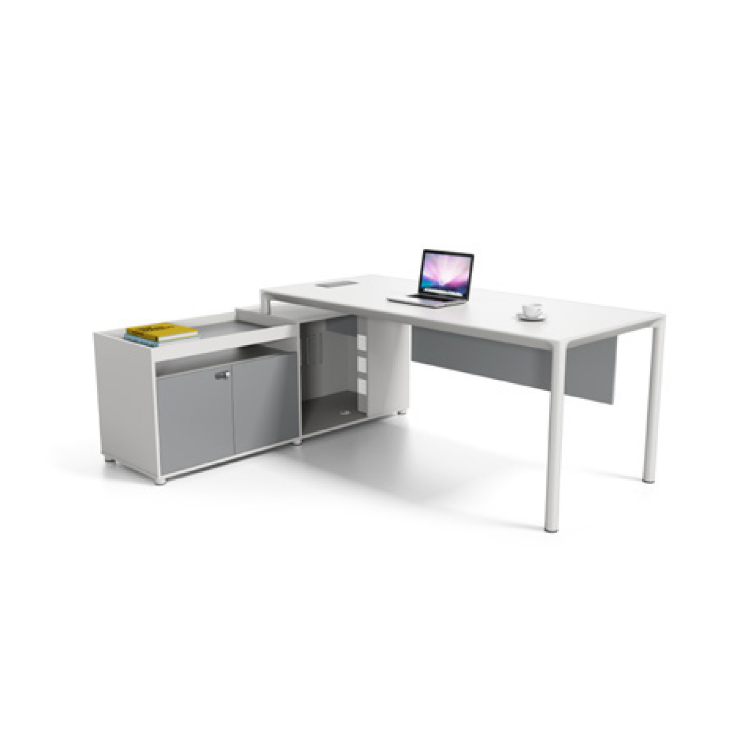 Compact workstation desk with integrated drawer storage, perfect for small office spaces. Designed for efficiency and organization, offering a clean and modern workspace suitable for everyday office operations.