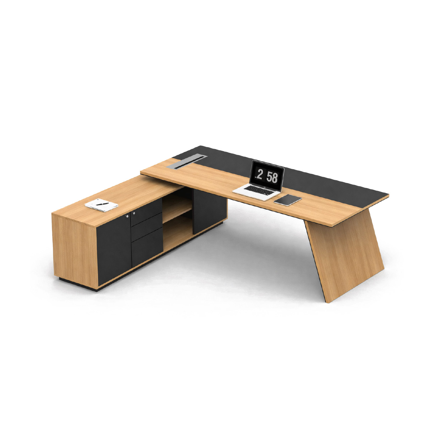 Professional director office table equipped with side storage cabinet for better organization. Designed for efficiency, durability, and a refined executive look in modern corporate environments.