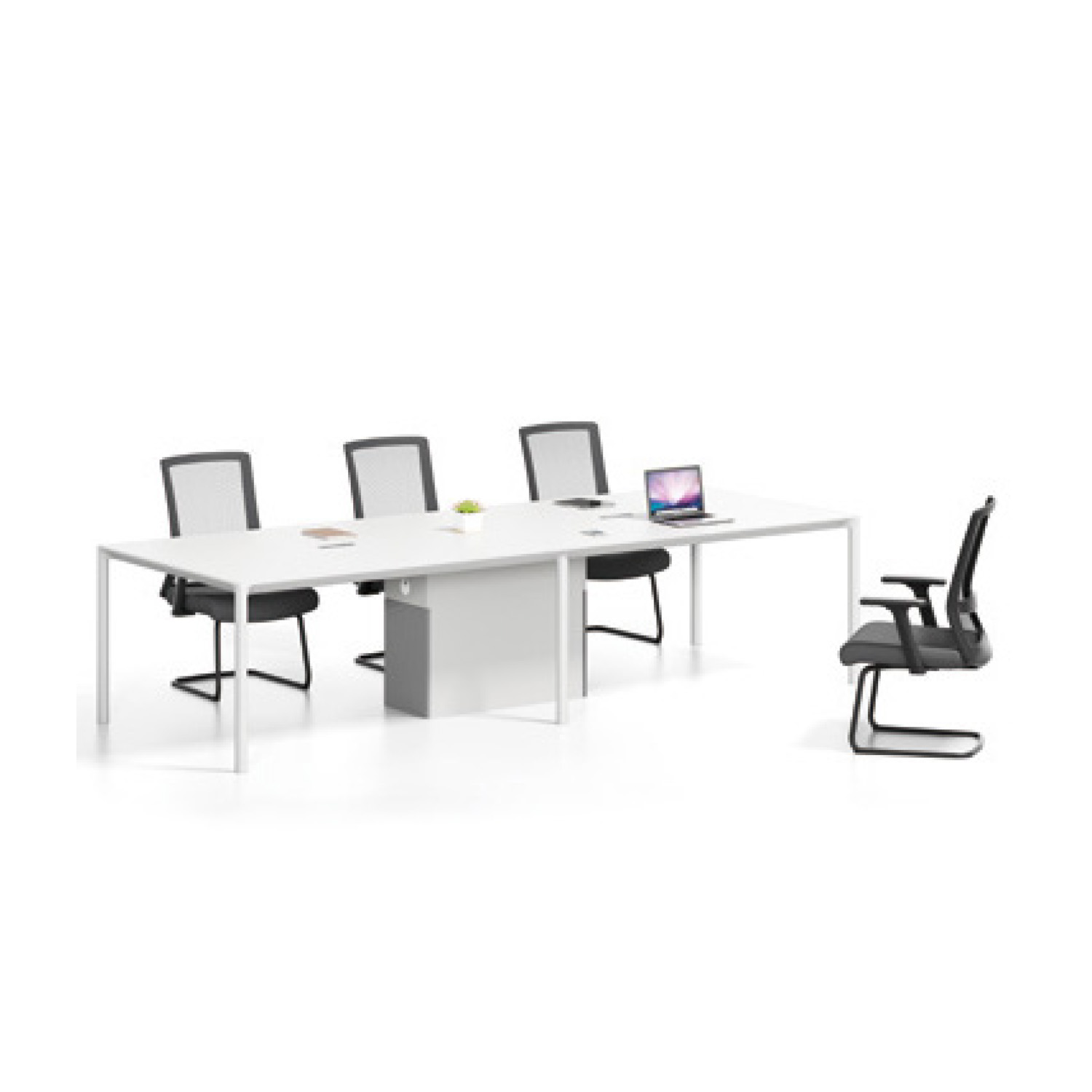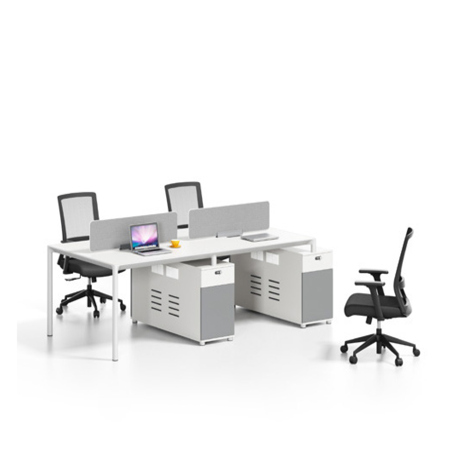 Contemporary office workstation featuring integrated storage units and a spacious work surface. Ideal for corporate environments, providing organized workspace, durability, and a clean professional design to enhance team productivity.