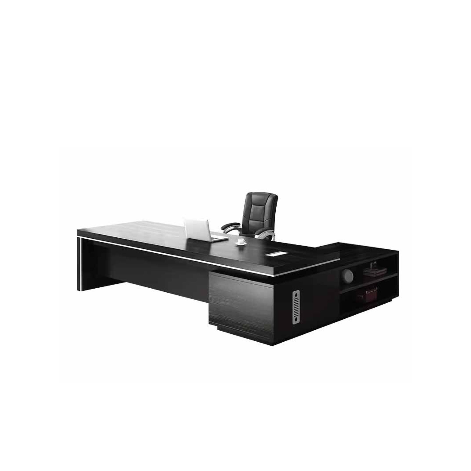 Elegant director desk crafted with premium wooden finish and ergonomic layout. Provides ample workspace and storage, making it suitable for professional executive environments and contemporary office setups.